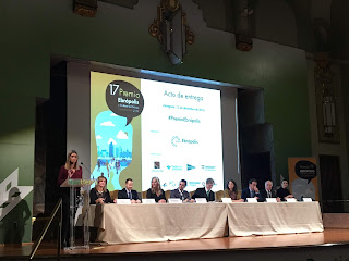 El pasado 13 de diciembre estuvimos en la entrega de los 17 Premios Ebrópolis a las Buenas Prácticas en la sede de Bantierra. Un acto en el que se premiaban las buenas prácticas realizadas en la ciudad y su entorno y que contó con la presencia, entre otros, de Pedro santisteve, el alcalde de Zaragoza.