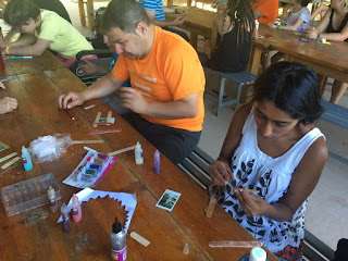Taller de arcilla para crear llaveros, taller de fotos Polaroid para crear marcos de fotos artesanos y creación de un photocall donde cada uno plasmó sus manos con pintura.