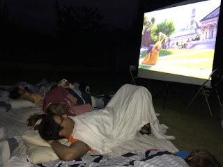 Noches de cine, una vez acabada la jornada después de cenar disfrutamos de una película diaria al aire libre.