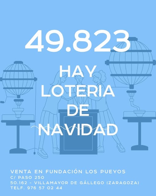 ¡Ya está disponible nuestra #LoteríaDeNavidad! Este año jugamos con el número 49.823 Juega con nosotros y colabora con la labor que realizamos cada día en la atención y apoyo a las personas con #discapacidadintelectual. ¡Porque este año toca en #LosPueyos! Punto de venta: Fundación Los Pueyos C/ Paso 250 50.162 – Villamayor de Gállego (Zaragoza) Tel. 976 57 02 44