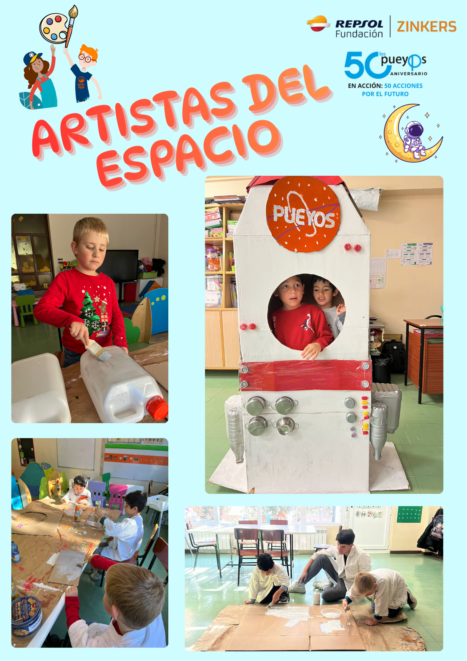 Los alumnos más pequeños de nuestro colegio nos han sorprendido con un cohete verdaderamente especial, elaborado a partir de cartones, botellas, cazuelas y otros materiales reciclados. Durante el primer trimestre han explorado el espacio desde diversas perspectivas y disciplinas, combinando conocimientos de ciencia, arte y creatividad. Este proyecto culminó con una obra de arte espectacular con la que han combinado diversión y aprendizajes.