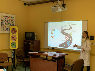 Continuamos en este curso 19/20 con las Campañas de Salud del Colegio Los Pueyos, en esta ocasión con la sesión de «Alimentación vital», en la que se explican las necesidades a nivel nutricional del cuerpo humano. Durante la actividad, a través del semáforo de los alimentos, la enfermera del centro, Raquel, explicó la importancia del agua y de realizar cinco comidas al día.