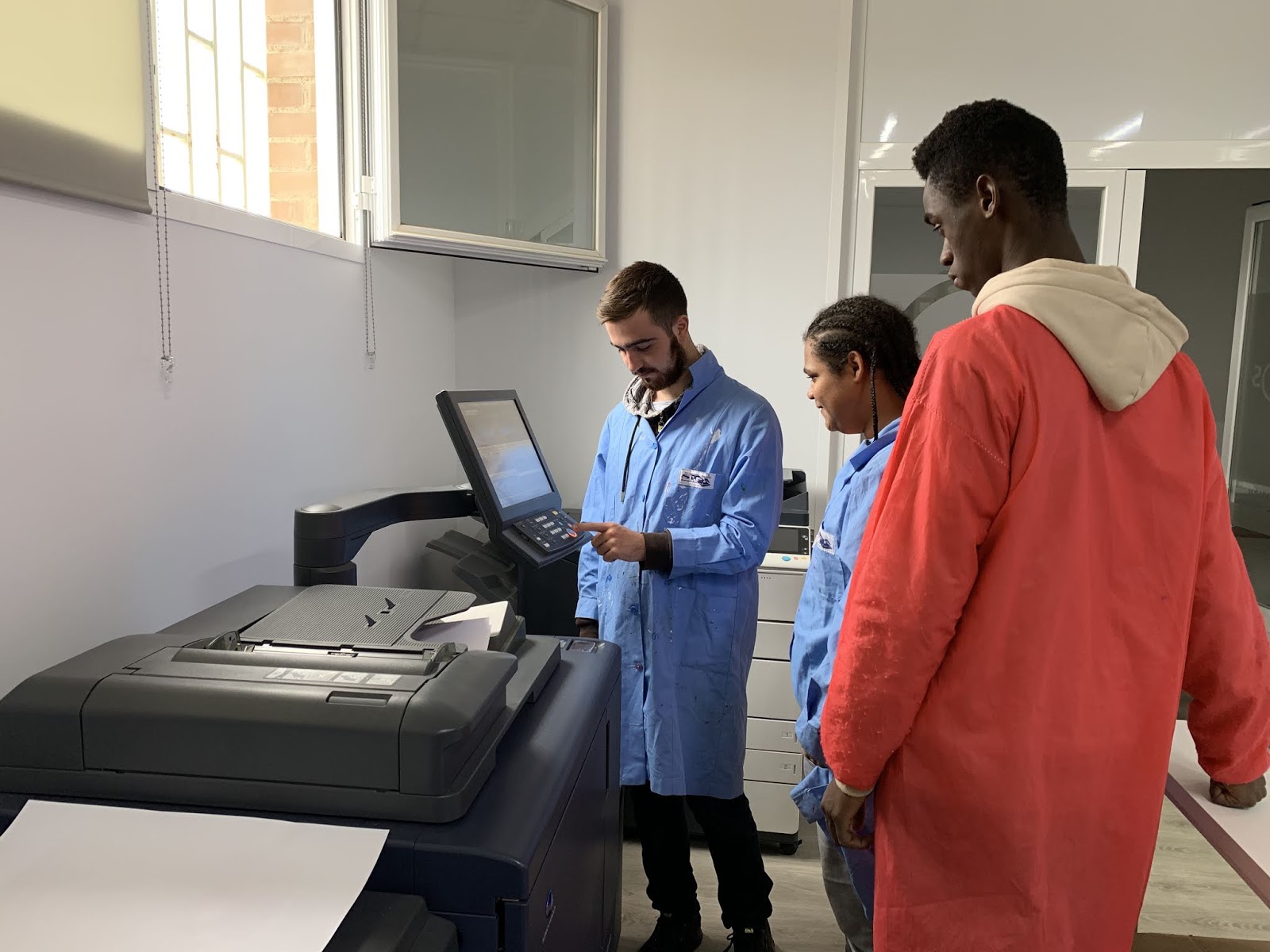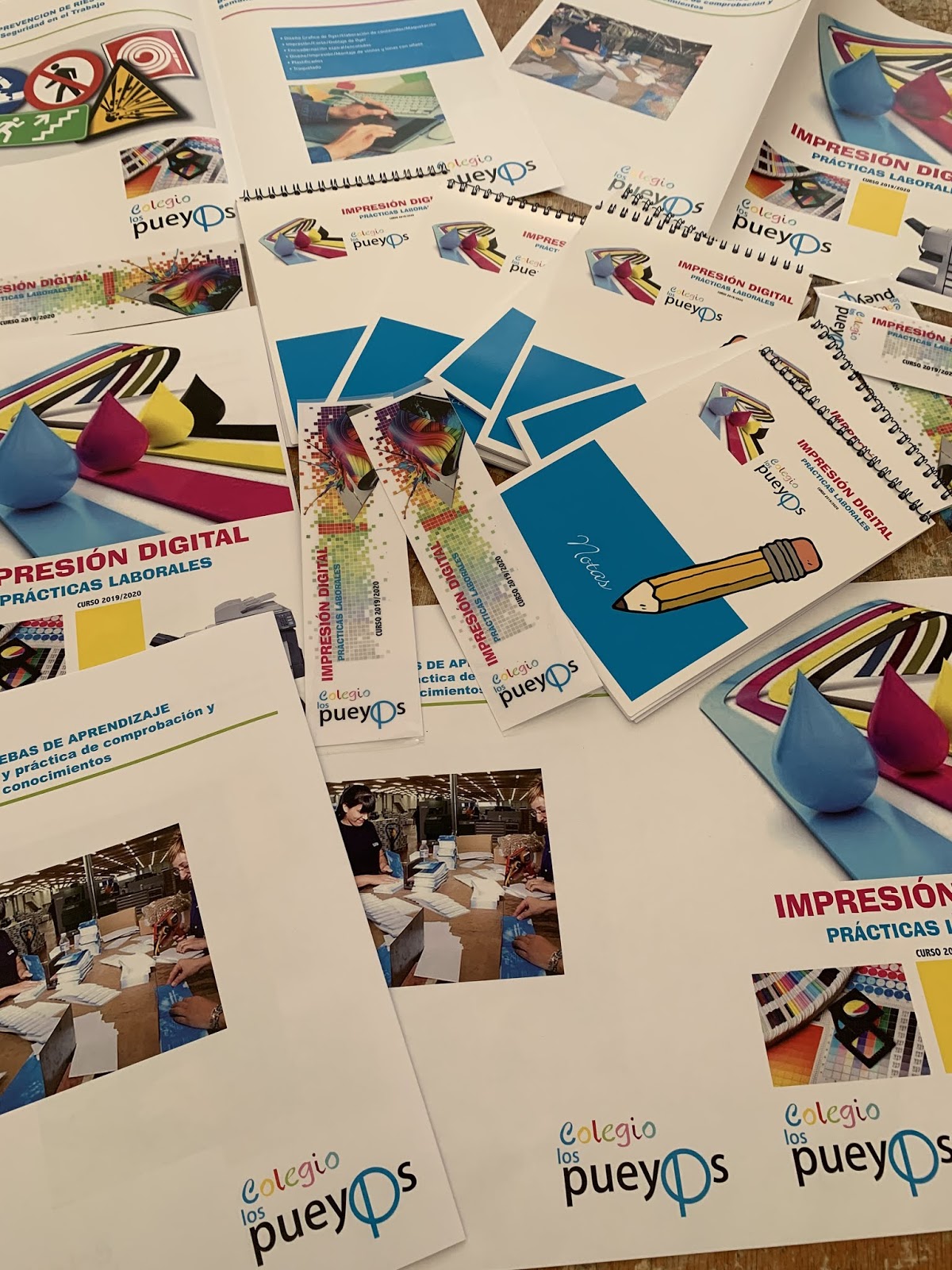 Este año hemos comenzado con las prácticas en nuestra imprenta digital y se han realizado diversas tareas, tales como el diseñar flyers, encuadernar y plastificar documentos.
