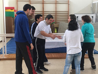Ayer comenzamos con el primero de los talleres de Teatro y Expresión Corporal para usuarios de Centro Ocupacional de Los Pueyos. Estos talleres impartidos por Fran de Teatro Bicho pretenden utilizar el teatro como herramienta de comunicación y juego, a través de la improvisación y la conciencia corporal y de pertenencia a un grupo.