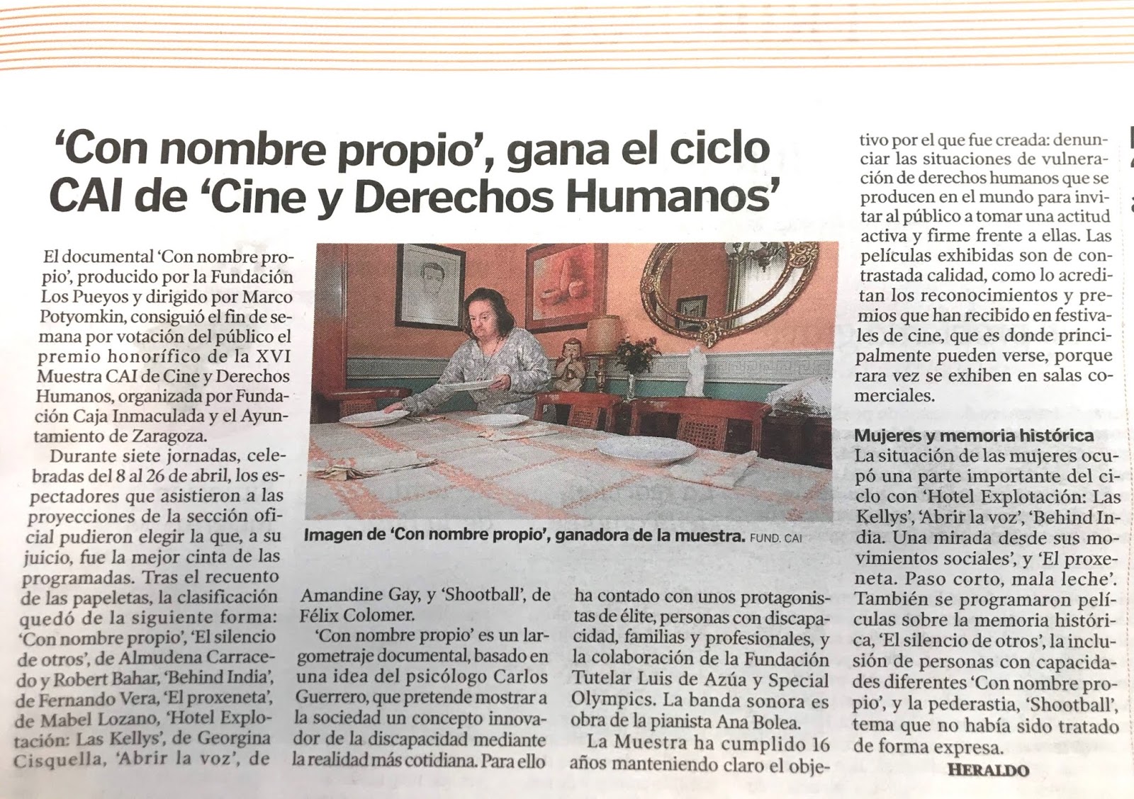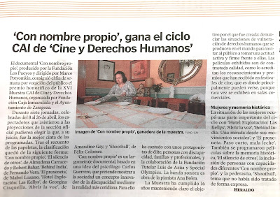 del Público de la Muestra de Cine y Derechos Humanos de Zaragoza, nos lo cuentan en el Espacio Sin Barreras de Heraldo de Aragón.