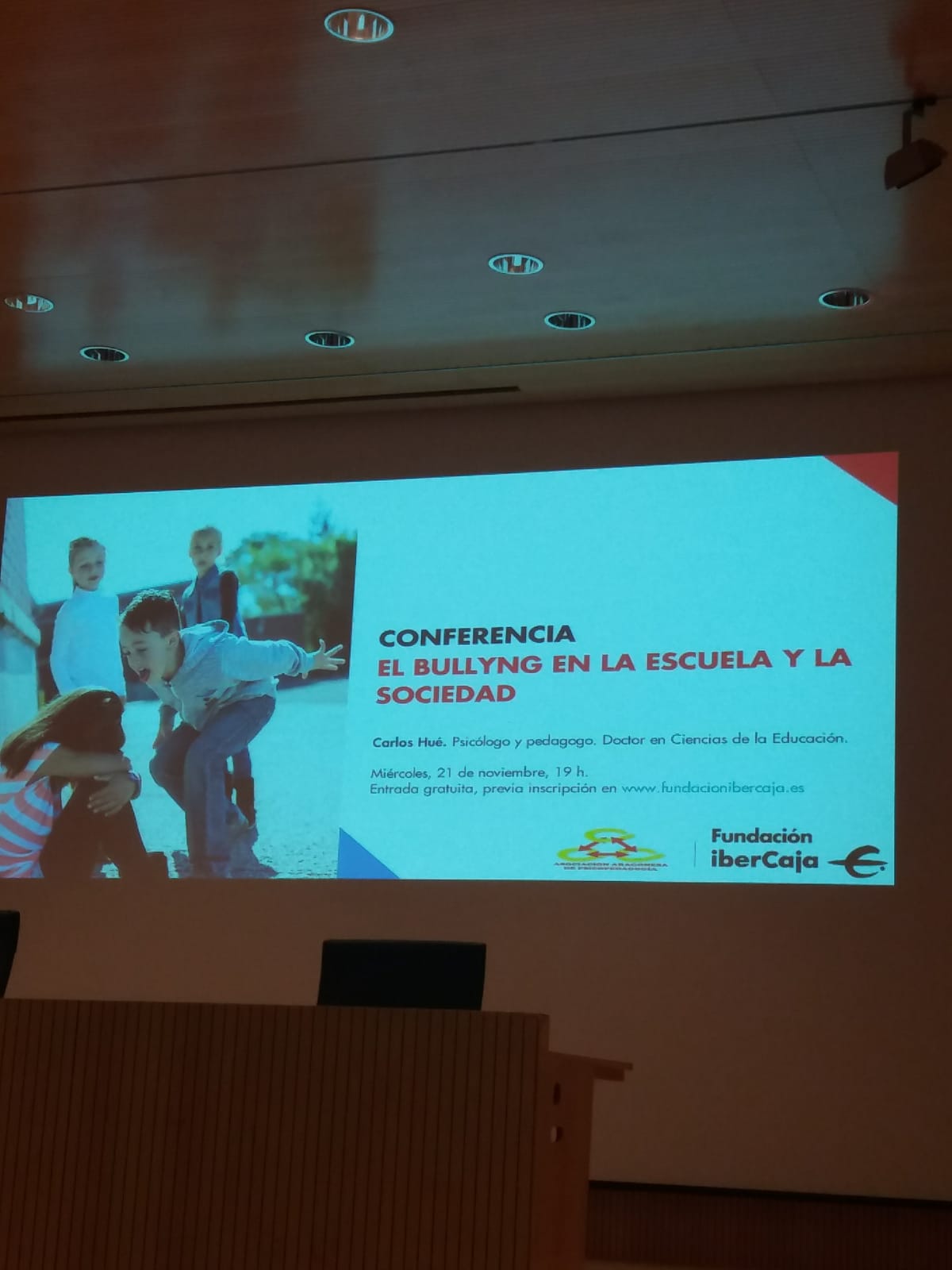 Hemos asistido a la Conferencia «El bullying en la escuela y la sociedad» organizada por la Fundación Ibercaja, con la colaboración de la Asociación Aragonesa de Psicopedagogía. La conferencia ha sido impartida por Carlos Hue García, psicólogo y pedagogo.
