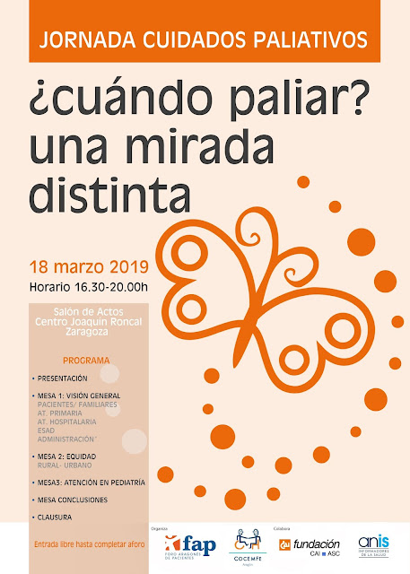 Os animamos a asistir el próximo lunes 18 de marzo a la Jornada «¿Cuándo paliar? Una mirada distinta» organizada por el Foro Aragonés de Pacientes en el Centro Joaquín Roncal de Zaragoza de 16:30 a 20 horas.