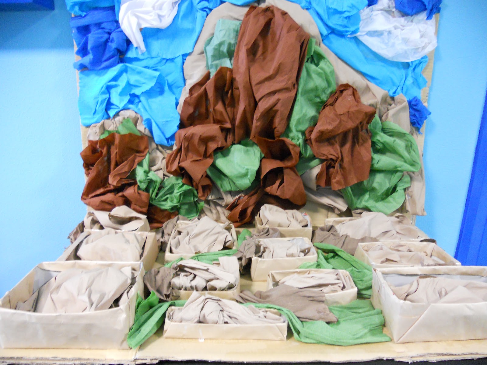 Se han utilizado materiales reciclables, cajas de cartón, arena,…. ¡nunca imaginamos que los periódicos pudieran dar tanto juego! ¡Y hasta galletas! para conseguir un efecto tan real que hace que te sientas transportado a lugares maravillosos como China, Jordani a o Egipto.