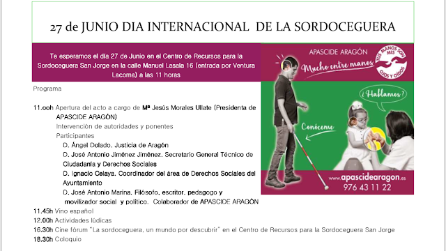 Con motivo del Día Internacional de las Personas Sordciegas os animamos a que asistáis a la jornada de APASCIDE Aragón.
