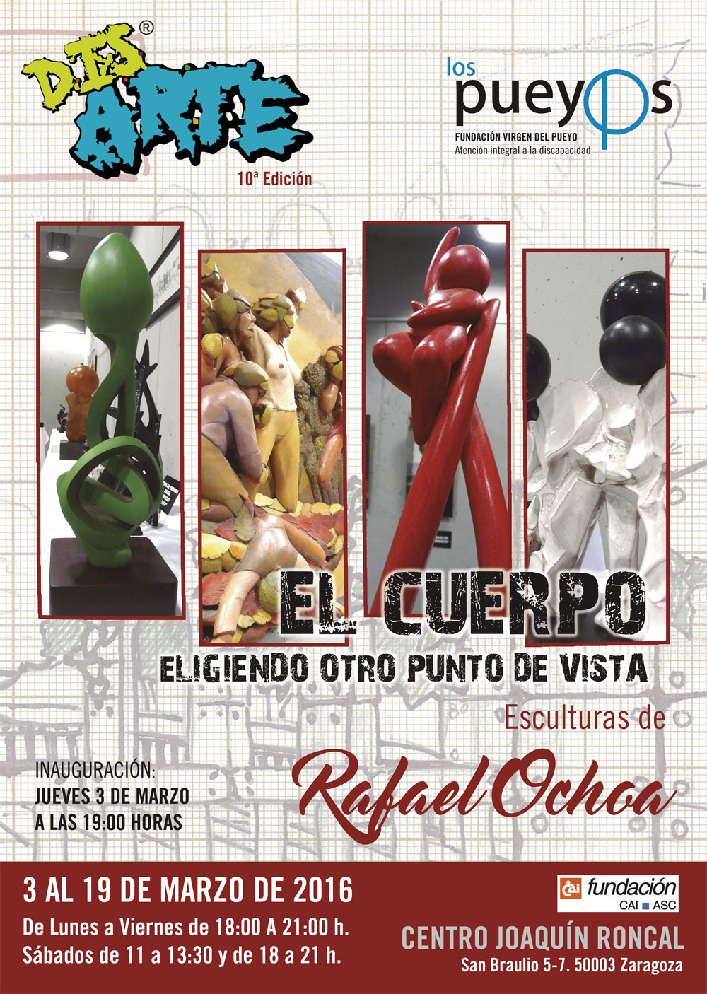 Comenzamos la X Edición de Disarte, una edición muy especial que contemplará varios actos, de los cuales les iremos informando en breve espacio de tiempo, arrancamos con una primicia, la exposición del escultor Rafael Ochoa, cuya inauguración tendrá lugar el próximo jueves 3 de marzo de 2016 en el Centro Joaquín Roncal a las 19:00 horas, os esperamos a todos.