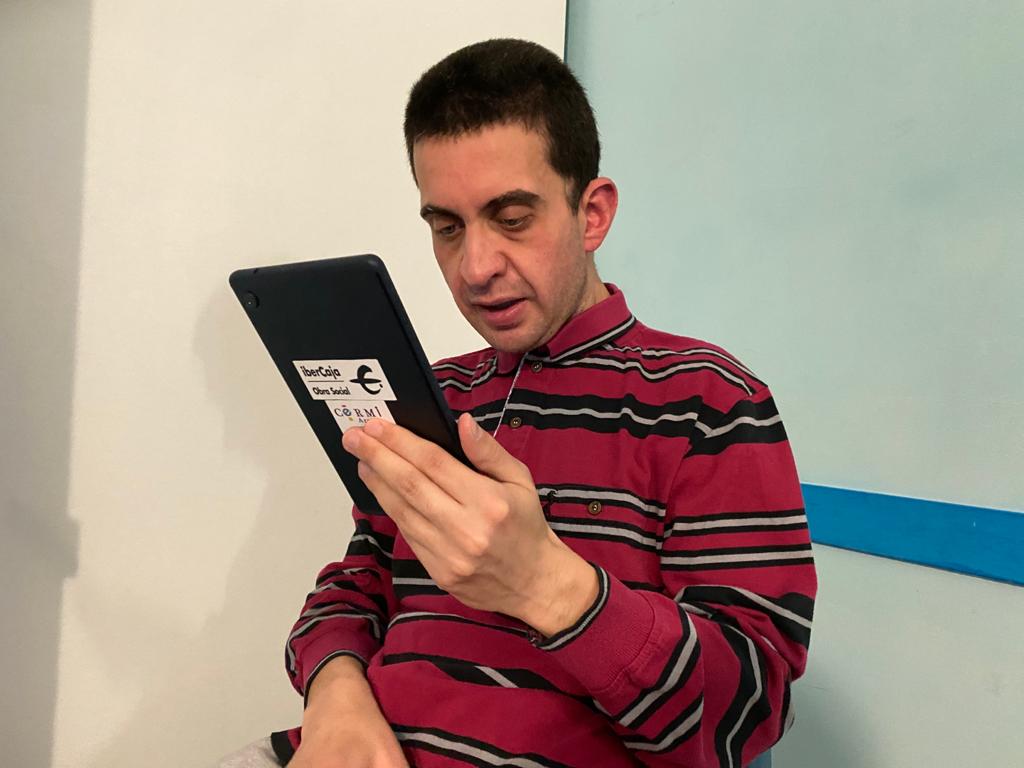 Así de contento está nuestro residente Gustavo tras quedar finalista en la categoría de escultura de los Premios Trazos de Igualdad, organizados por CERMI Aragón y promovidos por Partido Popular del Parlamento Europeo, y ganar esta tablet con su obra «Construyendo Horizontes».
