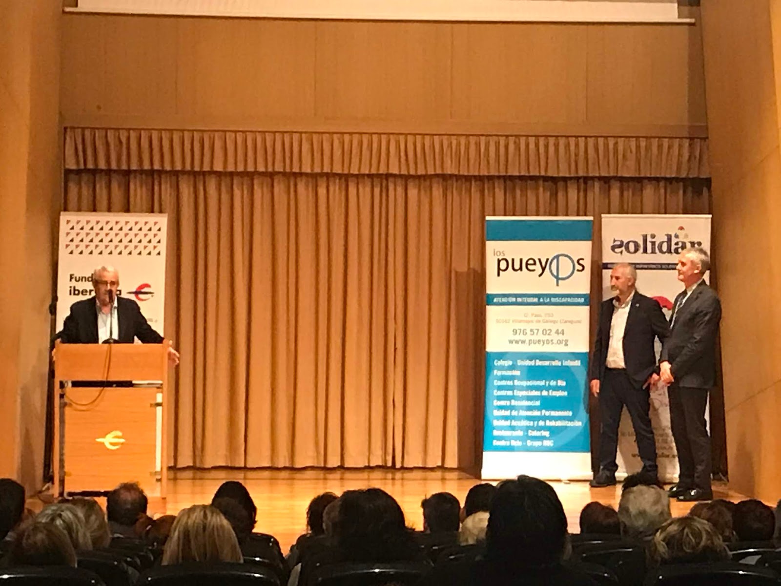 El acto contó con la presencia de Ana Vázquez, directora de INAEM; de Juan Carlos Sánchez, jefe de la Obra Social de Ibercaja; de Isabel Clemente, directora del Centro Ibercaja Actur; de Carlos Guerrero, presidente de nuestra Fundación; de Carlos Cabeza, vicepresidente de Solidar; y de diversos miembros y colaboradores de la Asociación.