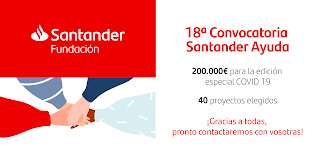 Muchas gracias a la Fundación Banco Santander por seleccionar nuestro proyecto en su 18º Convocatoria #SantanderAyuda especial #COVID19. ¡Vuestro compromiso nos hace más fuertes y nos ayuda a continuar con nuestra labor!