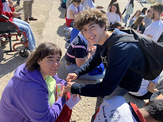 Este pasado martes 15 de octubre, vinieron a visitarnos los alumnos de Bachillerato del Colegio Teresianas de Zaragoza para conocernos y disfrutar de una mañana juntos. La jornada consistió en una serie de juegos y actividades en diferentes espacios de Colegio y Fundación. Pintacaras, piscina, deporte y manualidades fueron algunas de las actividades que realizamos por grupos compuestos por los alumnos de Teresianas y nuestros alumnos de Colegio y usuarios de Fundación, todo ello acompañado de un rico almuerzo elaborado por uno de los grupos.