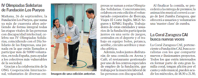 LAS IV OLIMPIADAS SOLIDARIAS EN HERALDO DE ARAGÓN