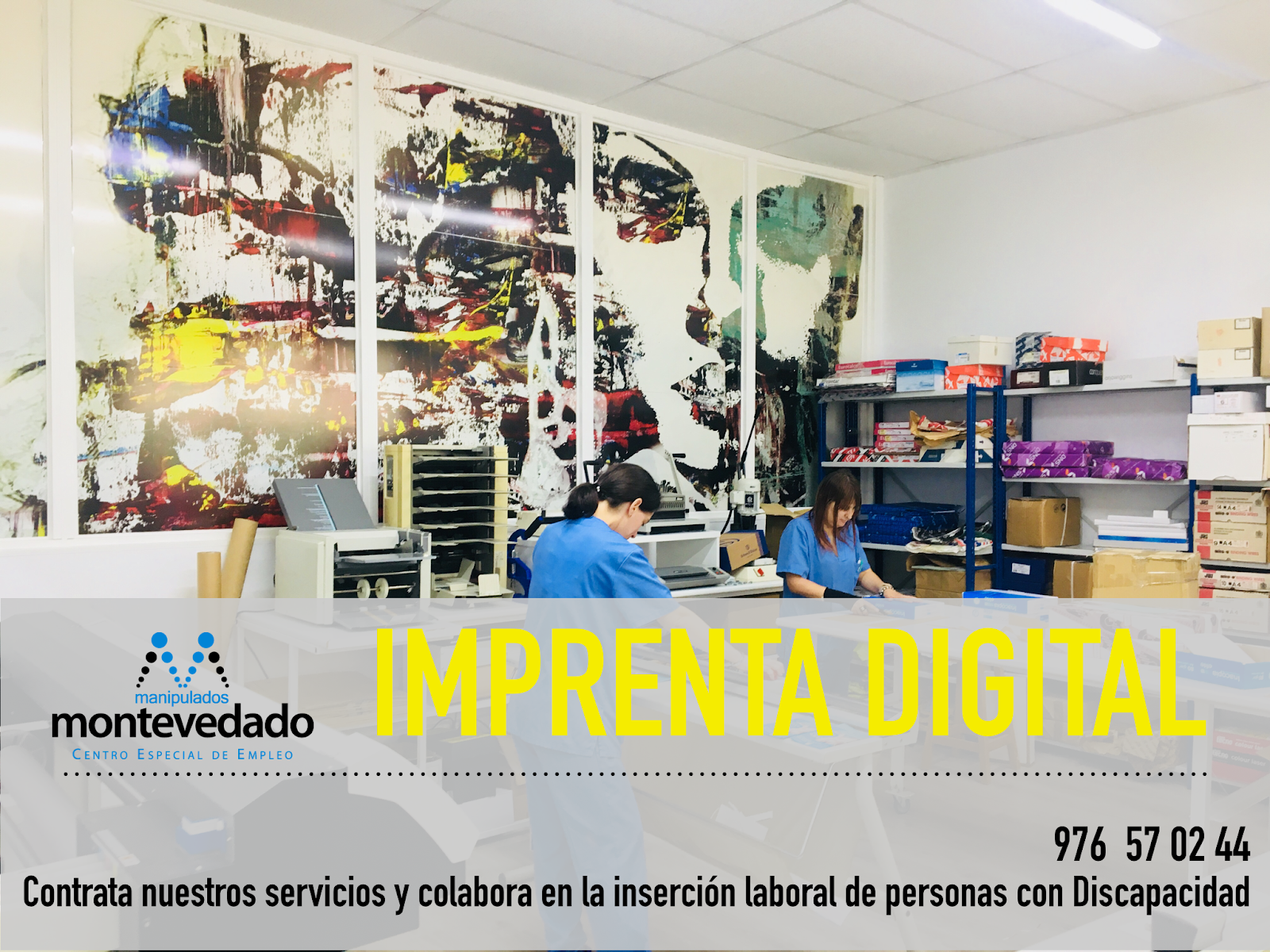 Contrata los servicios de nuestra imprenta digital y colabora en la inserción laboral de personas con discapacidad. Llama al teléfono 976 57 02 44 y pregunta sin compromiso.