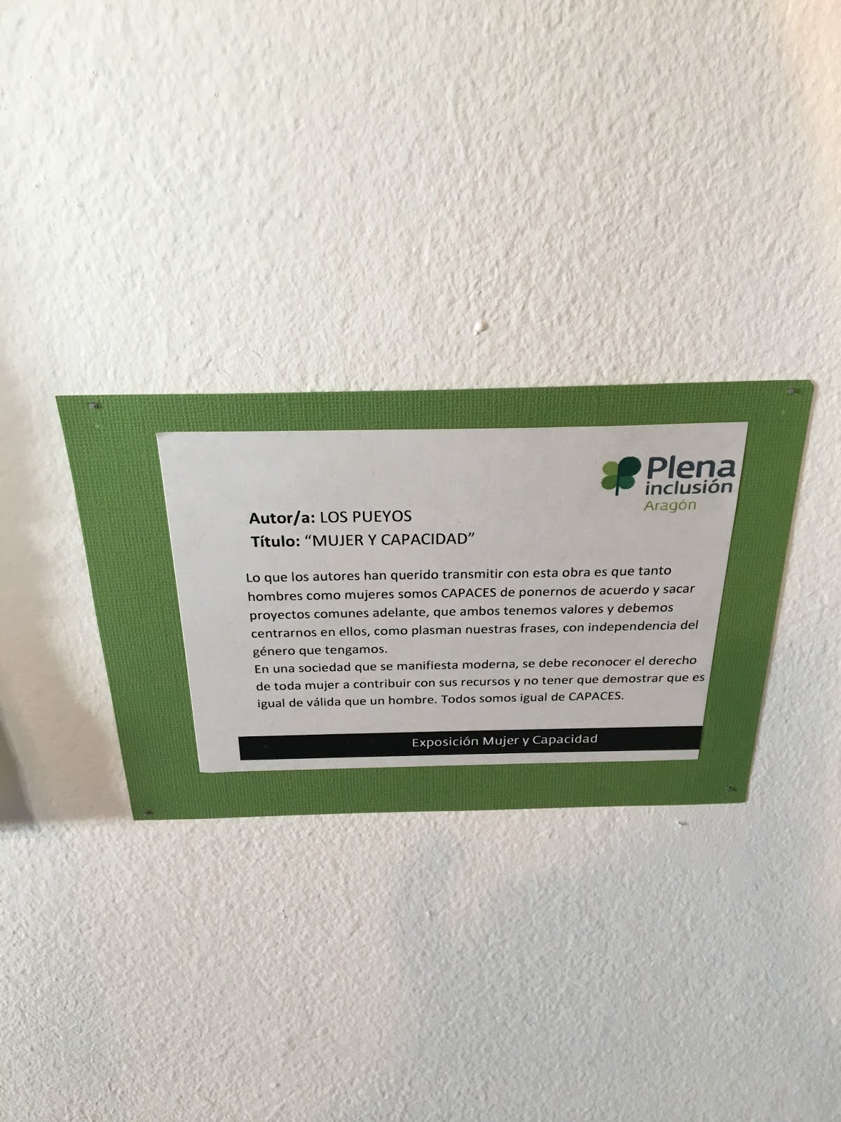 En Los Pueyos hemos querido participar y apoyar esta iniciativa y dos de nuestros chicos han presentado una obra: «Mujer y Capacidad» de Ana García y Daniel Borbón.