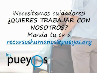 Necesitamos cuidadores para nuestro Centro Residencial con ganas de trabajar con personas con Discapacidad Intelectual, y trastornos de conducta asociados en muchos casos. Continuamos con nuestro empeño de formar el mejor equipo de cuidadores, por eso, ofrecemos a todos los profesionales formación gratuita. Turnos rotativos. Si quieres más información, puedes llamar al teléfono 976 13 84 99 o escribir un correo a recursoshumanos@pueyos.org