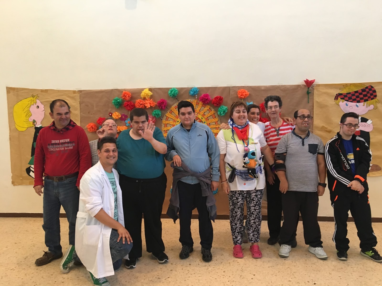 En Los Pueyos también hemos vivido intensamente estos Pilares y hemos tenido actividades especiales, en una de ellas nos tocó correr con los Cabezudos.