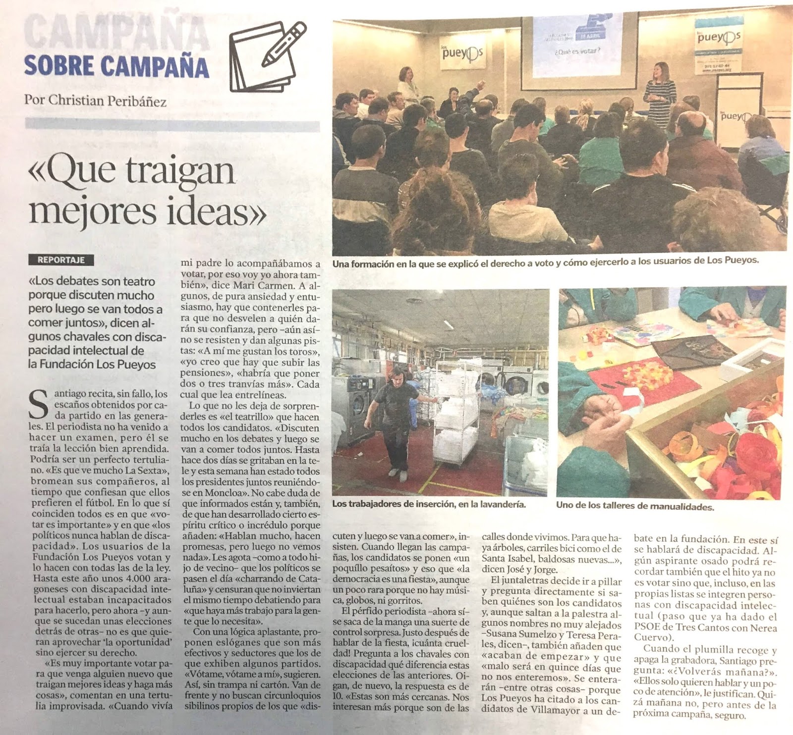 Os dejamos el reportaje de Heraldo de Aragón sobre el derecho a voto de las personas con discapacidad publicado el sábado 11 de mayo. Un reportaje basado en una interesante charla sobre democracia y elecciones con nuestros chicos y chicas.