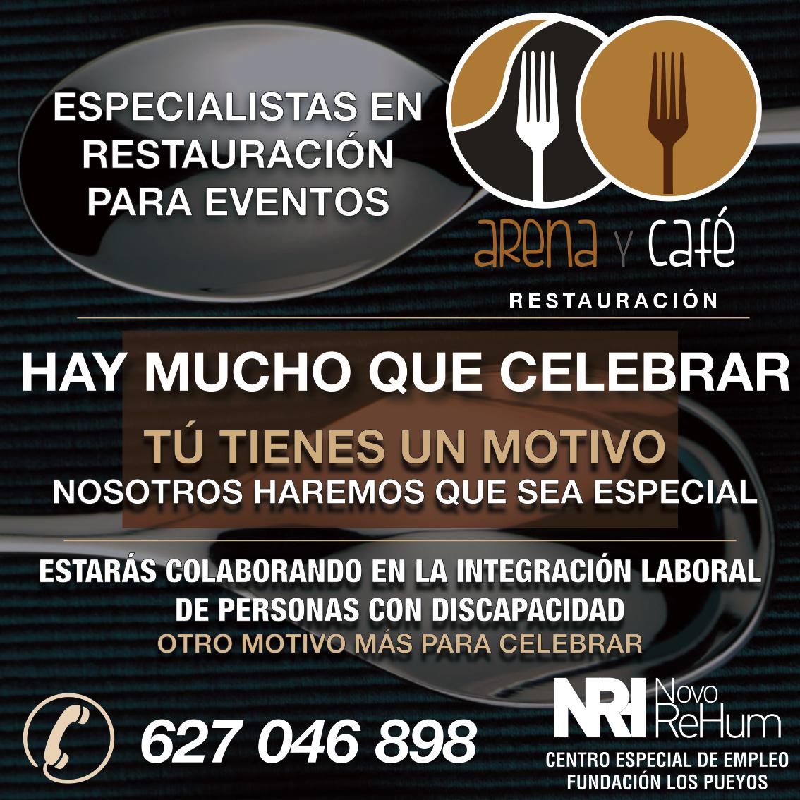 El sitio perfecto para tus celebraciones es el restauranteArena y Café, con espacios al aire libre, juegos infantiles, zona de baile y parking gratuito. Infórmate en el 627 046 898 y colabora así en la integración laboral de personas con discapacidad.